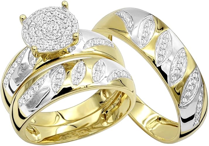 Amazon Com 10k Rose White Or Yellow Gold Engagement Rings And Wedding Band Set His Hers Trio Set 0 4ctw By Luxurman Jewelry Ernest Jones Wedding Rings Review