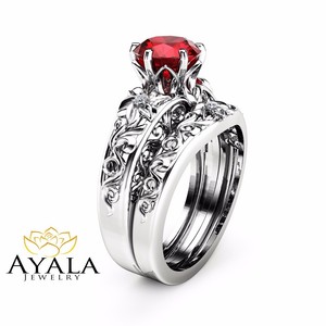 Natural Ruby Engagement Ring Set Unique 14k White Gold Gemstone Wedding Rings Ebay 14k Gold Wedding Ring Set
