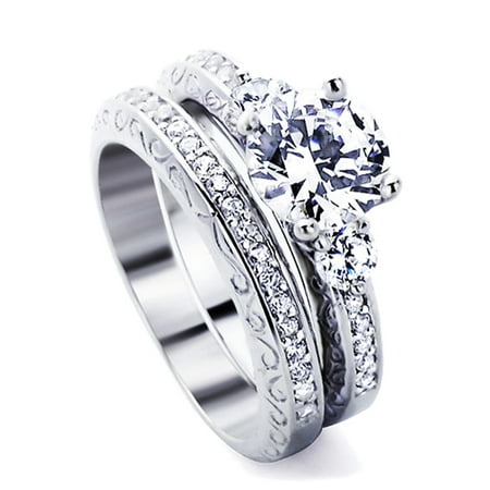 Pristine J Sterling Silver Wedding Ring Set Round Cz 2pcs Engagement Ring Bridal Set Walmart Com Walmart Com Name Wedding Ring Name Plain Gold Ring Design For Female