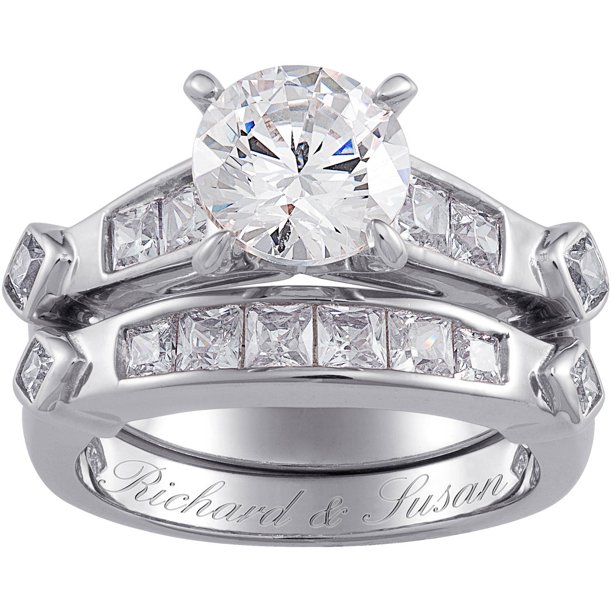 Personalized Planet Personalized Sterling Silver 2 Piece Cz Wedding Ring Set Walmart Com Walmart Com Name Wedding Ring Name Plain Gold Ring Design For Female