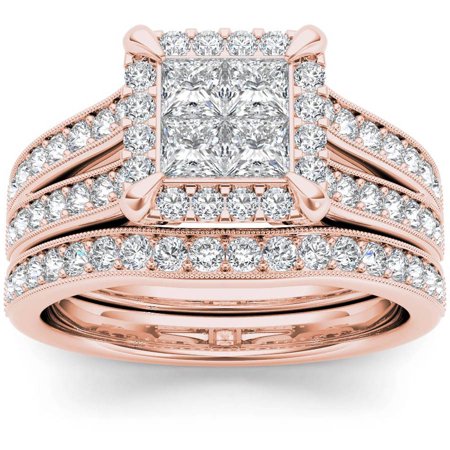 Imperial Diamond 1 1 2 Carat T W Diamond Split Shank Cluster Halo 14kt Rose Gold Engagement Ring Set Walmart Com Name Wedding Ring Name Plain Gold Ring Design For Female