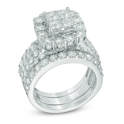 1 3 4 Ct T W Diamond Framed Bridal Set In 14k White Gold Bridal Sets Wedding Zales Gold Wedding Ring Enhancers