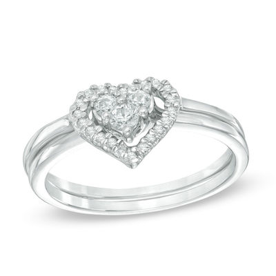 1 4 Ct Tw Diamond Cluster Heart Frame Bridal Set In 10k White Gold Gold Wedding Ring Enhancers