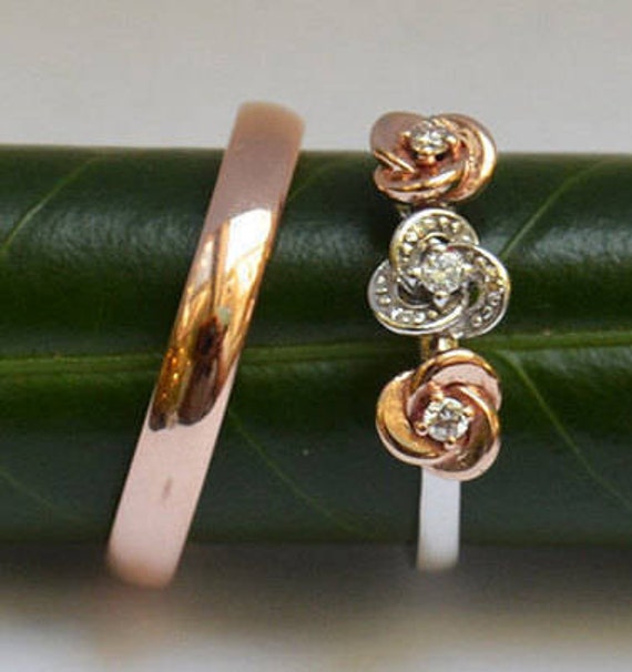 We set them in solid rose. Bbbgem only use natural conflict free diamondfor wedding ringit is normally used as a matching band and the diamonds are tiny or small ones. His and her 14k yellow gold fn diamond wedding bridal trio engagement ring set.