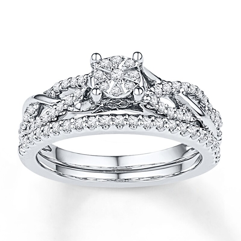 Diamond Bridal Set 3 8 Ct Tw Round Cut 10k White Gold Bridal Sets Engagement Engagement Kay Silicone Wedding Rings Etsy