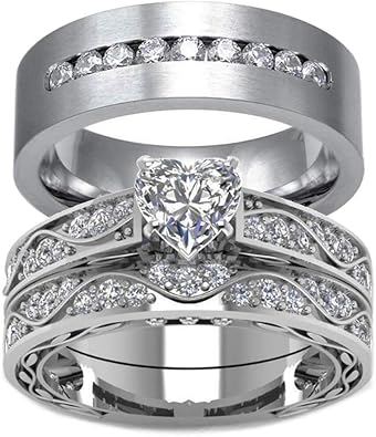 Wedding Ring Set His Hers Couples Matching Rings Women S 10k White Gold Filled Heart Cz Wedding Engagement Ring Bridal Sets Men S Tungsten Carbide Wedding Band Amazon Co Uk Jewellery 14 Karat Gold Wedding Ring Set