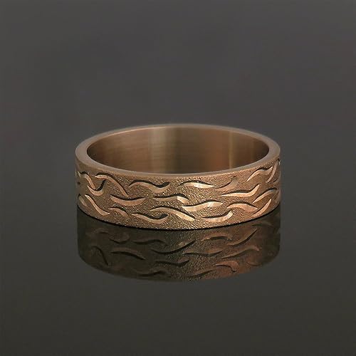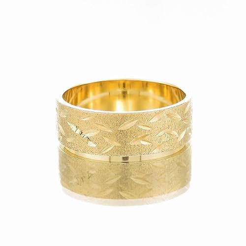 Amazon Com Wide Yellow Gold Wedding Band For Him And Her With Hand Engraved Cuts Texture Boho Artisan 14k And 18k Solid Gold Jewelry In Sizes Us 3 5 8 75 Handmade Wedding Rings For Sale Amazon