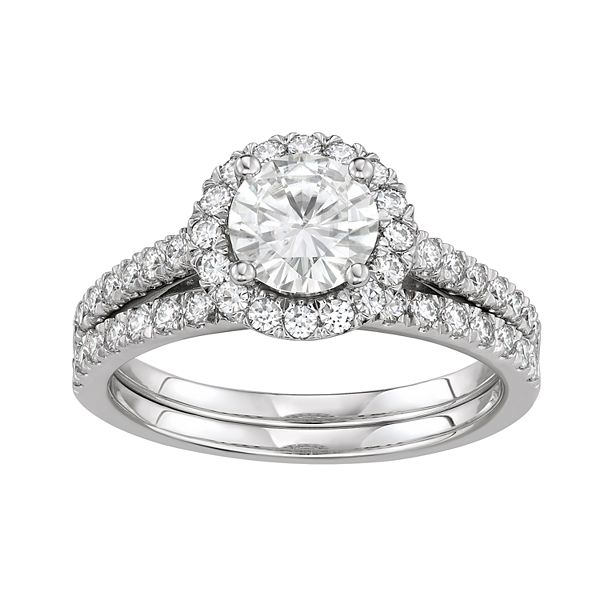 Womens Charles Colvard 14k White Gold 1 3 4 Carat T W Lab Created Moissanite Bridal Set Rose Gold Engagement Ring And Wedding Band Set