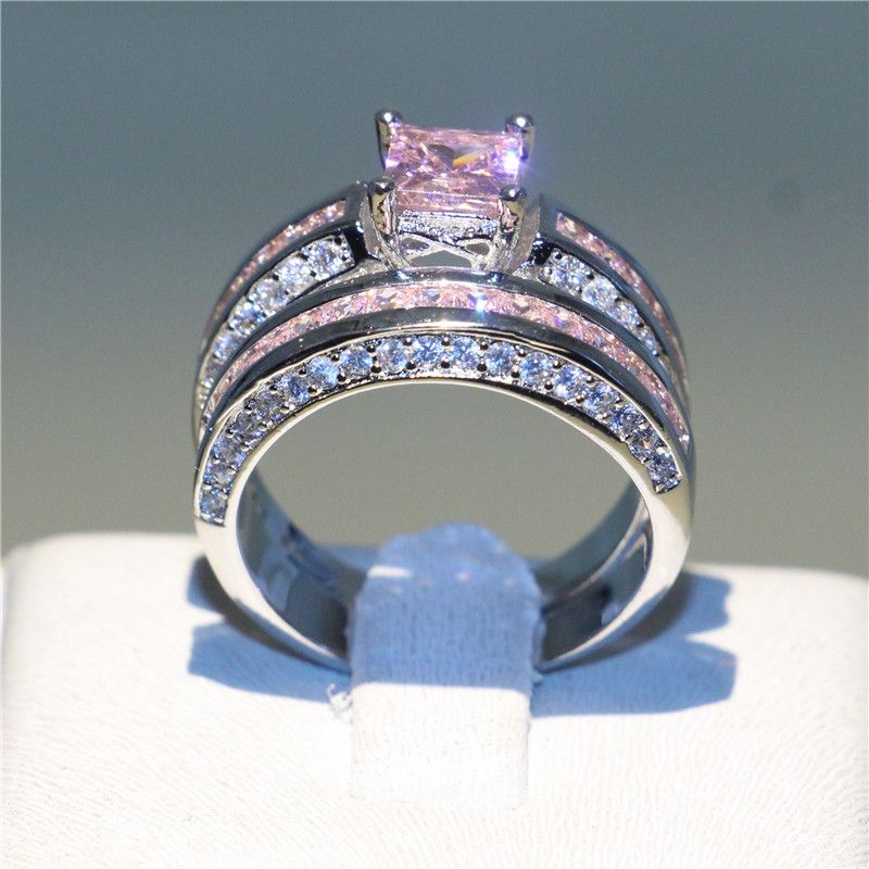 2020 Classic Women 2 In 1 Wedding Ring Set White Gold Filled Fashion Jewelry Square Pink Sapphire Cz Gift For Engagement Promise Finger Rings From Haiking90 18 09 Dhgate Com Rose Gold Engagement Ring And Wedding Band Set