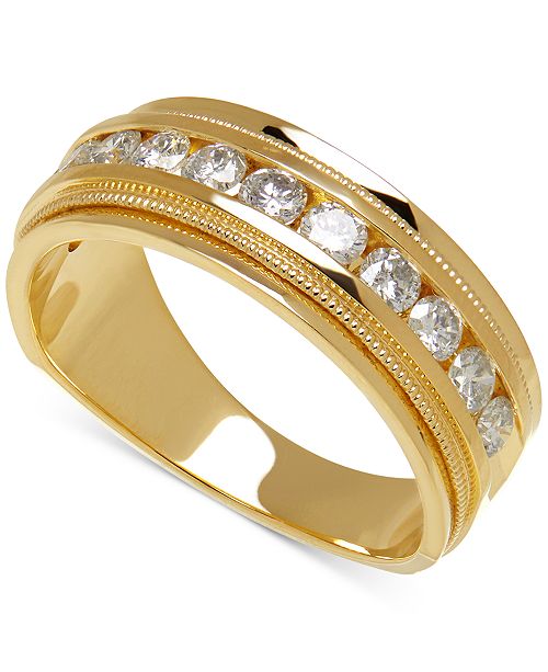Macy S Men S Diamond Milgrain Band 1 Ct T W In 14k Gold Reviews Rings Jewelry Watches Macy S Wedding Rings For Couples In Gold